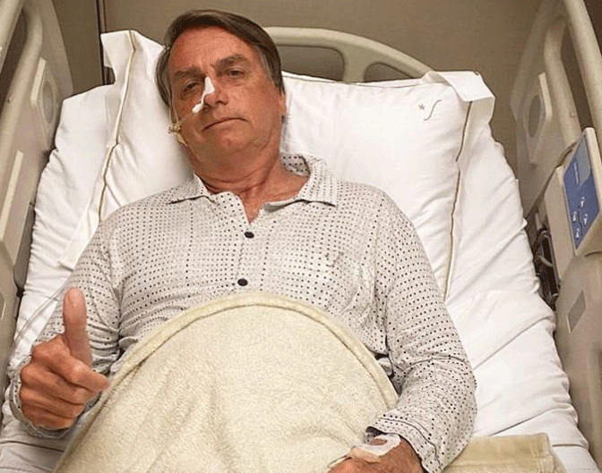 "Comecei a passar mal após o almoço de domingo. Cheguei ao hospital às 03h00 de hoje. Me colocaram sonda nasogástrica. Mais exames serão feitos para possível cirurgia de obstrução interna na região abdominal. É a segunda internação com os mesmos sintomas, como consequência da facada (06/set/18) e 4 grandes cirurgias", publicou o presidente nas redes sociais.