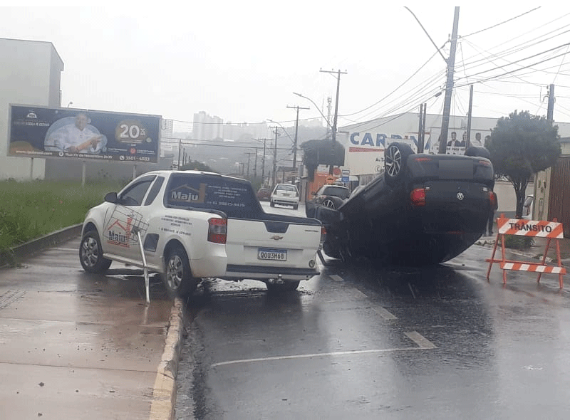 Nesta tarde de terça-feira, 4 de janeiro de 2022, um Fox capotou na Rua Miguel João,  cruzamento com a Rua José Pinheiro , jardim Bandeirantes, São Carlos-SP.