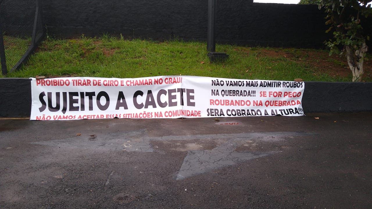 Faixa escrita “não vamos mais admitir roubos na quebrada”, é retirada pela PM do Antenor Garcia