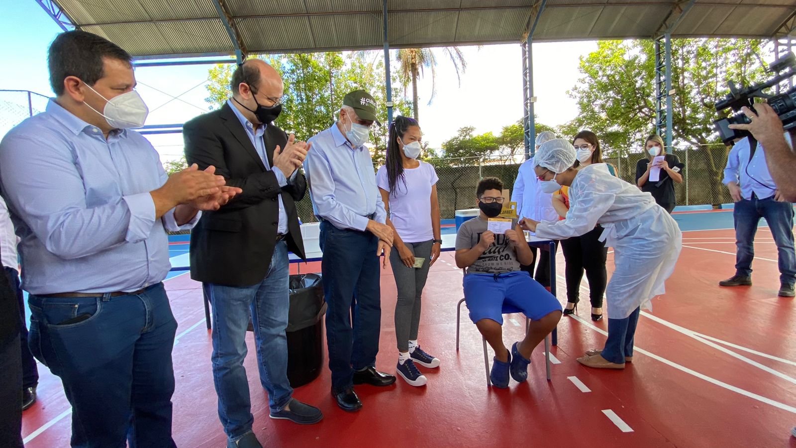 Na escola estadual Atília Prado Margarido, as autoridades deram início à vacinação infantil. O jovem indígena Pietro dos Santos Ribeiro, 9 anos, foi o primeiro a receber a dose da vacina contra Covid 19 no Atília. Em São Carlos, Jean César, 10 anos, foi a primeira criança vacinada na UBS da Vila São José.