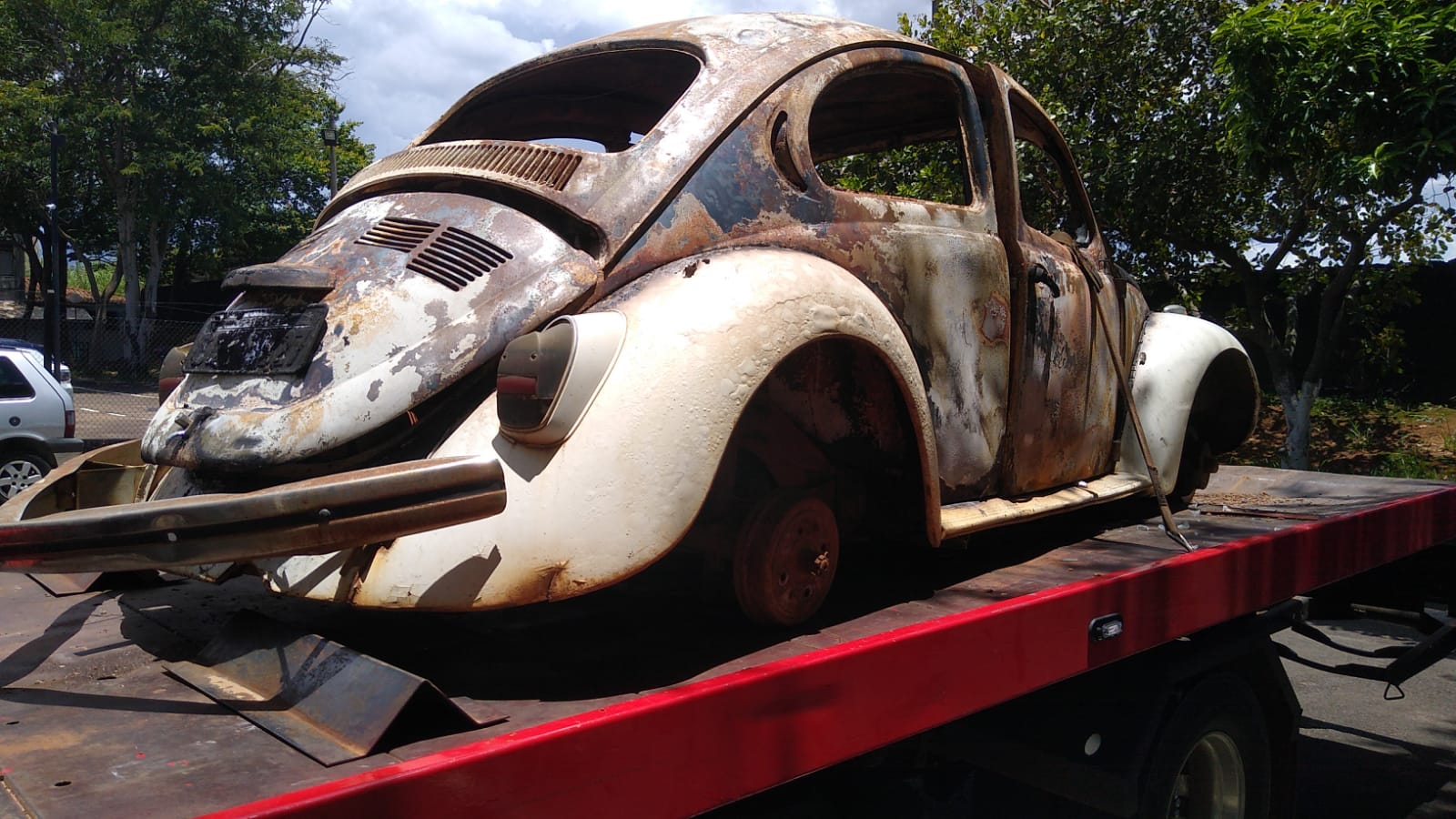 A PM foi acionada no local e constatou que o Fusca queimado era produto de furto. A ocorrência foi encaminhada à Central de Polícia Judiciária, onde compareceu a vítima.