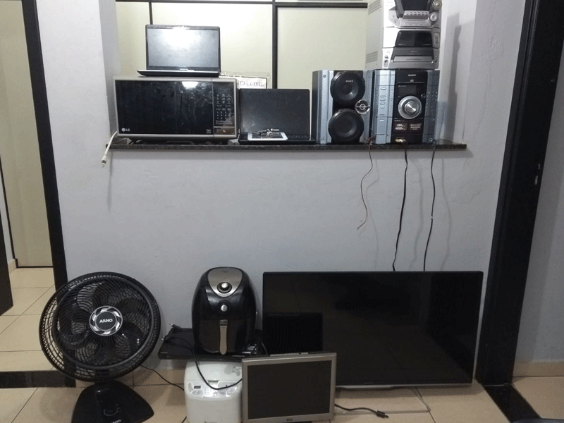 Em busca pessoal  foram  localizados com os detidos  objetos pertencentes a vítima e no interior do veículo estava  o restante dos objetos  roubados. Ambos foram encaminhados à Central de Polícia Judiciária, autuados em flagrante por roubo e recolhidos ao Centro de Triagem de São Carlos.
