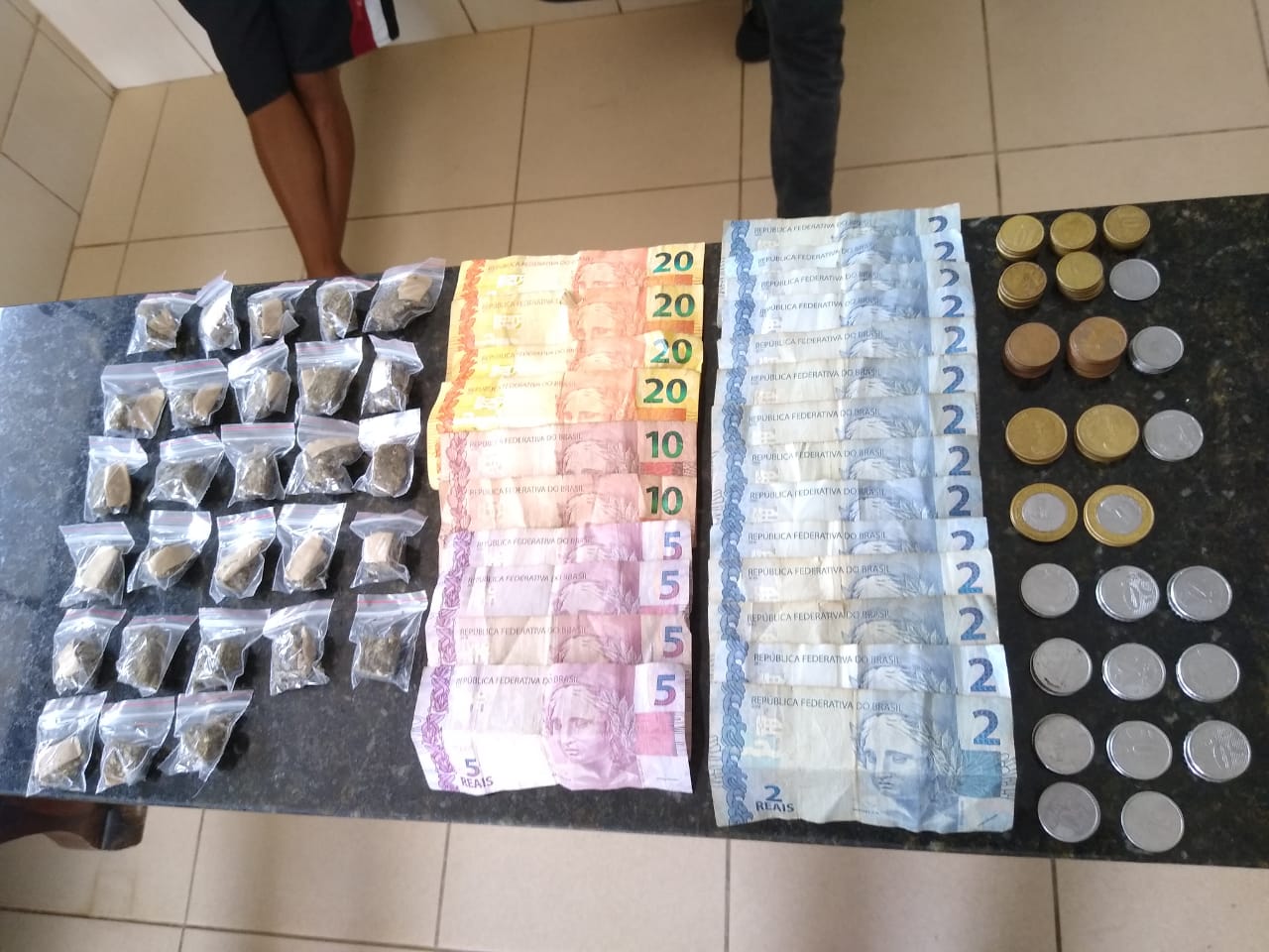Um homem de 31 anos e um adolescentes foram encaminhados à Central de PolÃcia Judiciária, juntamente com  28 porções de maconha e R$  168,00. Até o fechamento desta matéria a situação dos detidos não havia sido definida. Â