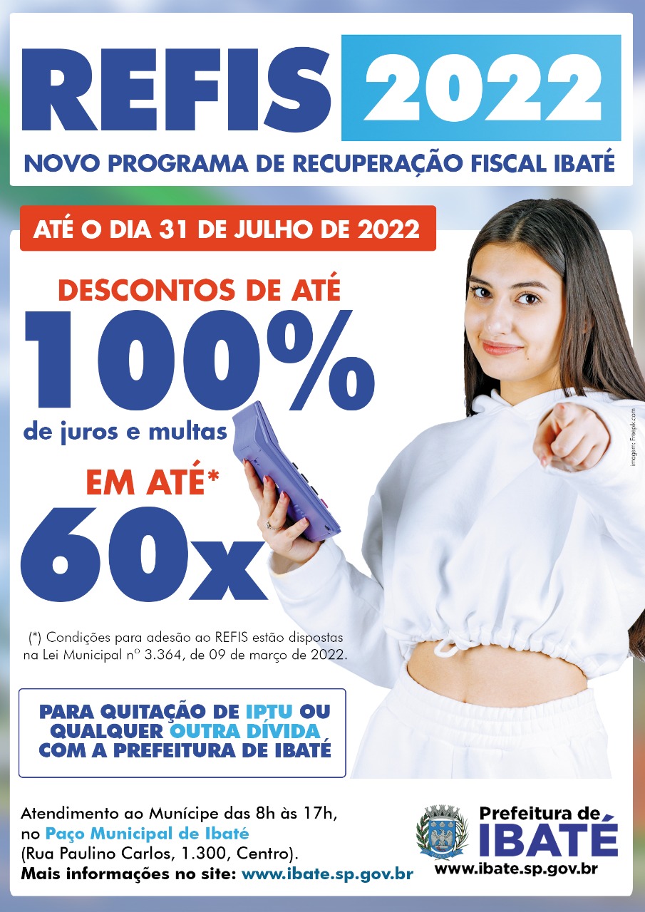 A Lei Municipal nº 3.364, que institui o Novo Programa de Recuperação Fiscal Ibaté (REFIS) 2022, se estende até o dia 31 de julho.