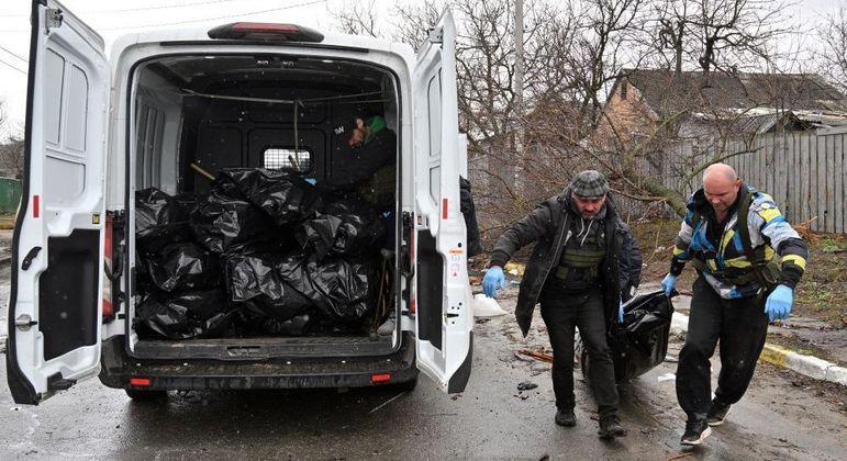 As tropas russas ocuparam Bucha três dias após o início da invasão da Ucrânia, em 24 de fevereiro. Kiev também acusou Moscou de matar civis na cidade de Irpin, que, assim como Bucha, foi destruída por bombardeios.