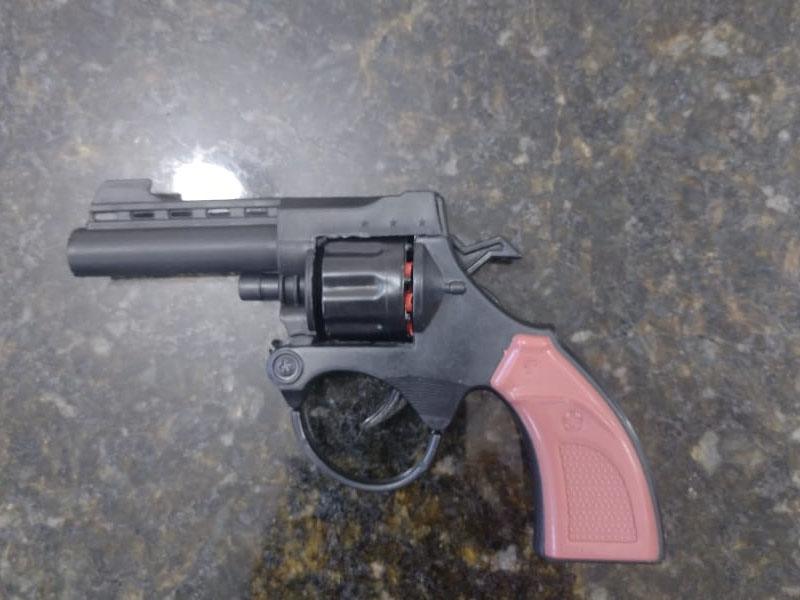 De acordo com informações, a PM  recebeu denúncia que um indivíduo estaria  com uma arma na cintura. Policiais foram para o local e encontraram o sujeito dentro de um ônibus com destino a cidade de Araraquara. O indivíduo disse que comprou o objeto em Minas Gerais pela quantia de quarenta reais. O averiguado foi encaminhado à Central de Polícia Judiciária, qualificado e liberado. O simulacro foi apreendido.