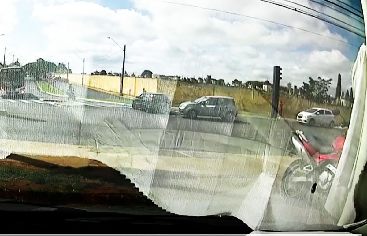 A imagem foi gravada por uma câmera de segurança veicular que estava estacionado no local.