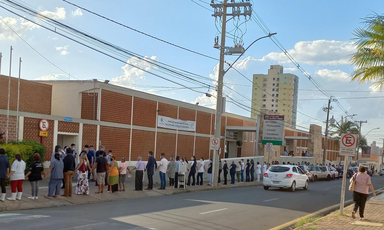 A Santa Casa de São Carlos realizou na tarde desta terça-feira (19) um abraço simbólico no hospital como parte da Campanha “Chega de Silêncio” da CMB (Confederação das Santas Casas e Hospitais Filantrópicos). Por ser uma campanha nacional, mais de 1.824 instituições de todo o Brasil se uniram neste ato com o objetivo de alertar a sociedade para a grave crise financeira da maior rede hospitalar do SUS e pedir ajuda para a sobrevivência dessas entidades filantrópicas. Além de São Carlos, a Santa Casa de Araraquara e o Hospital Carlos Fernando Malzoni (HCFM) de Matão também aderiram ao abraço. “Os três são responsáveis por muitos atendimentos de média e alta complexidade de toda a região aos pacientes do SUS. Somente a Santa Casa de São Carlos atende cerca de 400 mil habitantes, não só de São Carlos, mas de outras cinco cidades: Porto Ferreira, Descalvado, Dourado, Ibaté e Ribeirão Bonito”, explicou o Diretor Administrativo e Operações, Mário Calderaro. Funcionários da Santa Casa e acompanhantes de pacientes se reuniram em frente a provedoria do hospital e fizeram um longo cordão por mais de três quarteirões. A Santa Casa de São Carlos decidiu não paralisar atividades nessa terça-feira (19) mas realizar um ato de conscientização, mais humano, simbolizado no abraço. As funcionárias da Santa Casa, Alvanira Oliveira, oficial de provedoria, mais conhecida como Dona Nira, e a Supervisora da Central de Relacionamento, Cleonice Faria, destacaram a importância de abraçar o hospital. “Esse abraço significa o nosso desejo de manter esse atendimento para a população, o que hoje não está sendo tão fácil”, disse a supervisora. “A gente gosta muito da Santa Casa e faz de tudo para que, cada vez mais, a instituição progrida e continue a atender toda a comunidade são-carlense”, afirmou Dona Nira. Desde o início do plano real, em 1994, a tabela SUS e seus incentivos foi reajustada, em 93,77%, enquanto o INPC (índice de preços ao consumidor) foi de 636,07%, o salário mínimo em 1.597,79%, o gás de cozinha em 2.415,94%. “Os valores repassados, por procedimento para cálculo de repasse e financiamento dessas instituições, não sofrem atualização há pelo menos dez anos. Ou seja, todos esses hospitais, incluindo a Santa Casa de São Carlos, estão subfinanciados e pagando para trabalhar”, destacou o Vice-Diretor Técnico da Santa Casa, Drº Roberto Muniz Júnior. Atualmente, a Santa Casa de São Carlos acumula um deficit econômico e financeiro nas suas operações SUS de aproximadamente 2 milhões de reais por mês. “Nós estamos buscando ao máximo a redução dos custos internos e de aquisição de materiais e medicamentos. Além da busca de novos recursos e projetos que possibilitem aumentar nossa arrecadação”, conclui o Diretor Administrativo e Operações, Mário Calderaro.