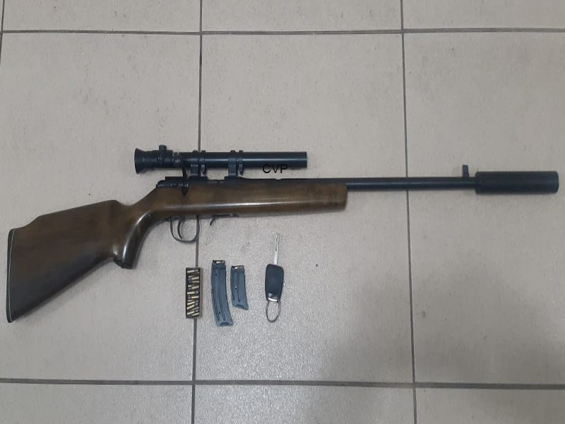 No interior do  carro  foi localizado uma espingarda calibre 22 e 47 cartuchos intactos. Ao ser indagado, o detido disse que havia comprado o armamento em São Paulo, porém não apresentou documentação.