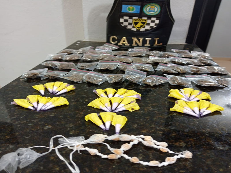 Averiguação em um canteiro central e a K9 Índia acabou localizando em uma sacola cor branca contendo 43 porções maconha, 33 pinos cocaína e 18 pedras crack. Ninguém foi detido. As drogas foram apreendidas na Central de Polícia Judiciária.
