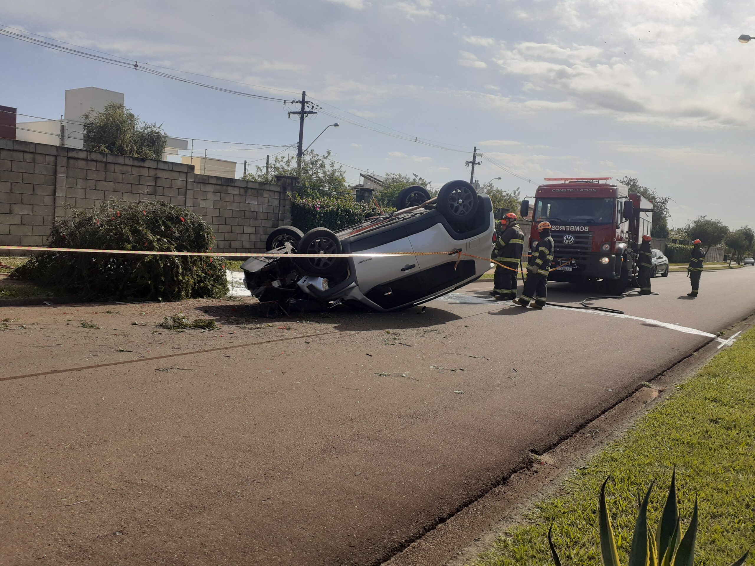 Carro capota no Jóquei Clube