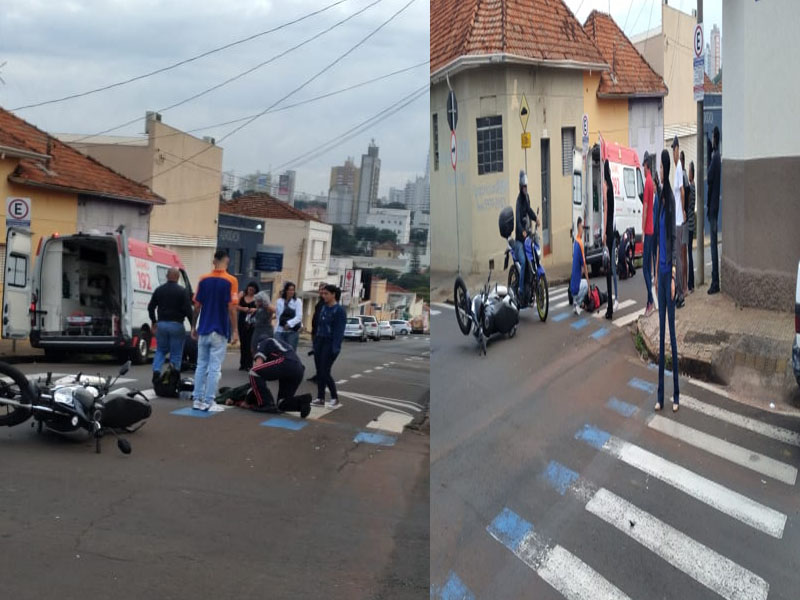 Dois jovens ficaram feridos em uma colisão entre uma moto e um carro ocorrida nesta manhã de sexta-feira, 3 de junho de 2022, no cruzamento da Rua Santa Cruz, com a    Rua São Joaquim, Centro de São Carlos-SP.