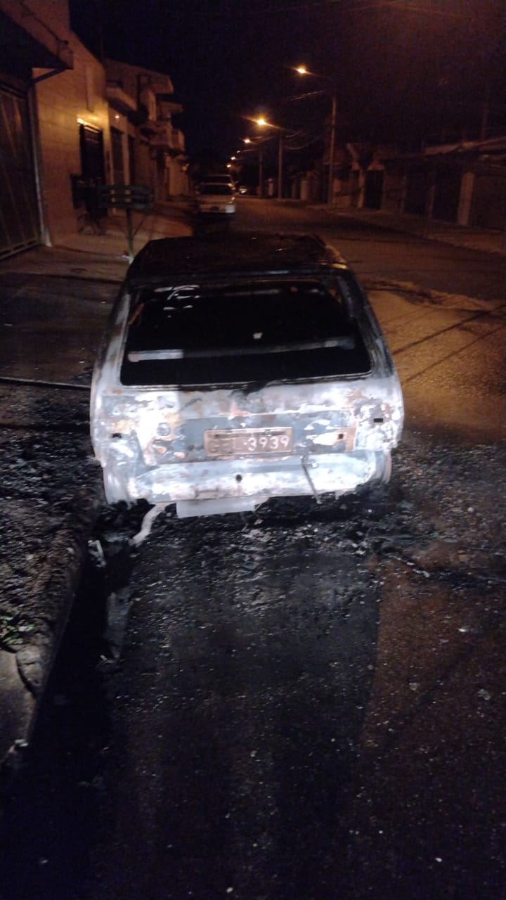 Um veículo foi encontrado em chamas nesta madrugada de terça-feira, 7 de junho de 2022, na Rua José Teixeira, região do Parque Sisi, São Carlos-SP.