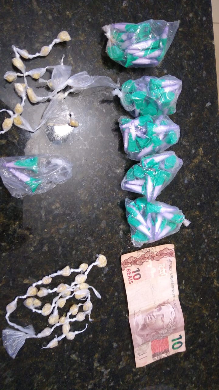 De acordo com informações, o cabo Simone e cabo  Alexsandro estavam em patrulhamento, quando se depararam com  P.S.S, 46 anos. Em seu poder foram localizados 25 pedras crack.   Na casa do sujeito foram localizados mais 16 pedras crack, 72 pinos de cocaÃna. P.S.S, foi encaminhado à Central de PolÃcia Judiciária, autuado em flagrante por tráfico de drogas e recolhido ao Centro de Triagem de São Carlos.