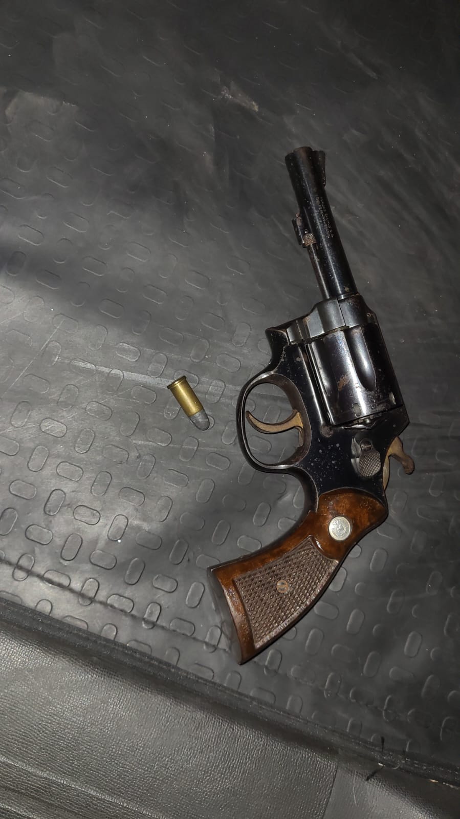 De acordo com boletim de ocorrência, eram por volta das 23:00, um comerciante de 41 anos, ligou para um policial militar e informou que um sujeito identificado como   W.F.S, 31, o qual já havia lhe ameaçado de morte, estaria parado defronte ao seu comercio. O PM foi para o local e abordou o suspeito. Em sua cintura foi encontrado um revólver Taurus, o qual estava com uma munição intacta.