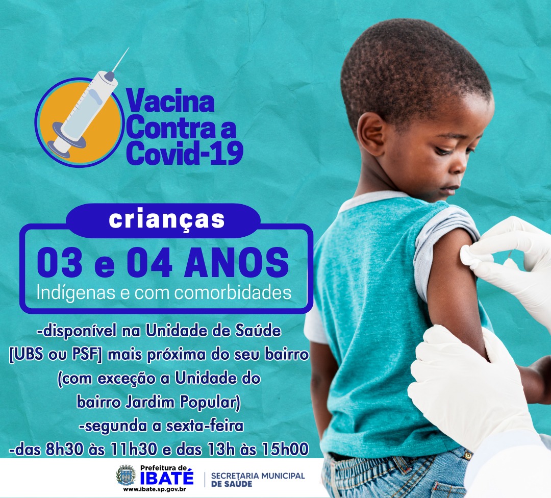 A Secretaria Municipal da Saúde de Ibaté inicia, nesta quarta-feira (24), a imunização de crianças de 3 e 4 anos de idade, contra a Covid-19. Neste primeiro momento, serão priorizadas crianças com comorbidades, com deficiência permanente (física, sensorial ou intelectual), além de indígenas quilombolas dessa faixa etária.