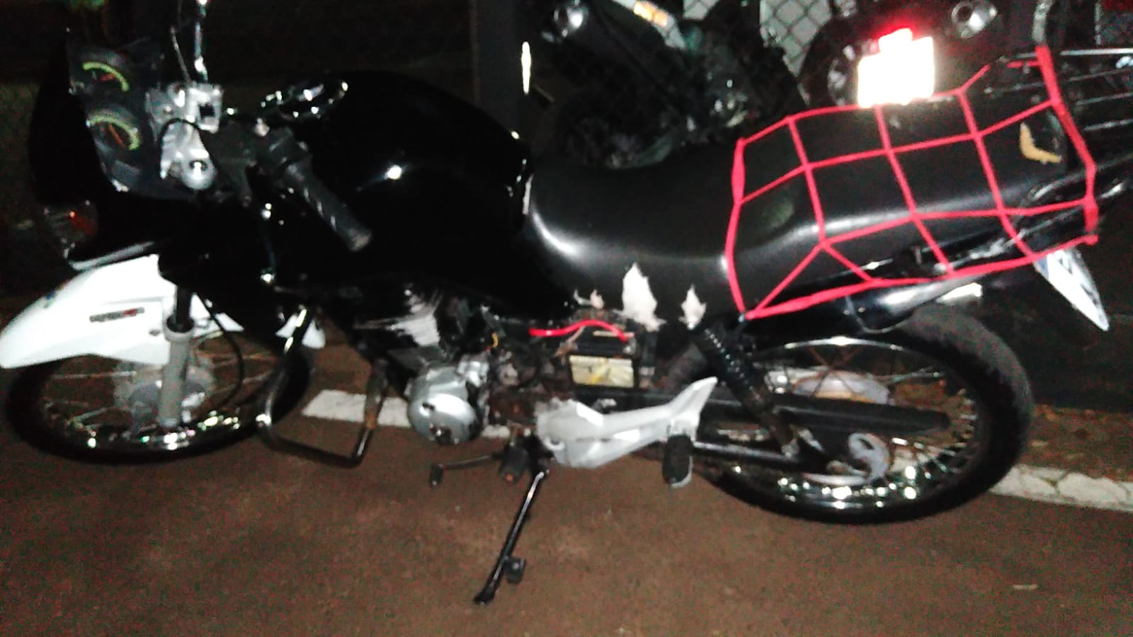 A Polícia Militar deteve um jovem de 19 anos e apreendeu uma moto na tarde de terça-feira, 23-08-2022, na Rua Oswaldo Denari, bairro Jd. Munique, São Carlos-SP.