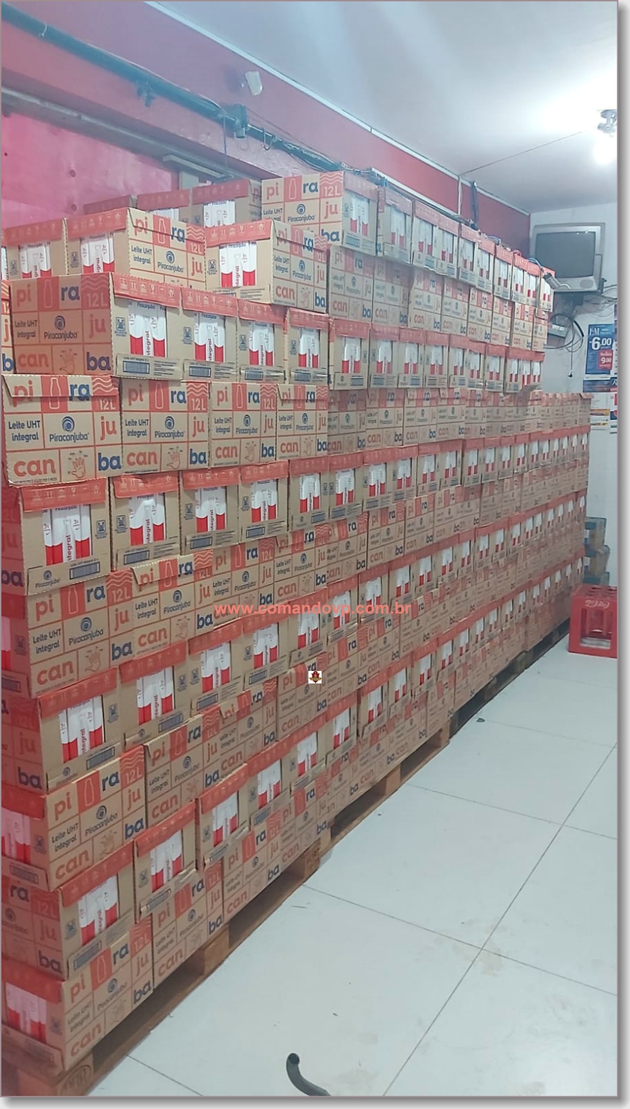 Em vistoria no local, localizaram produtos da mesma marca e espécie daqueles que foram subtraídos, ou seja, caixas de leite integral. No entanto, no momento não foi possível apurar a procedência dos produtos, que foram apreendidos.