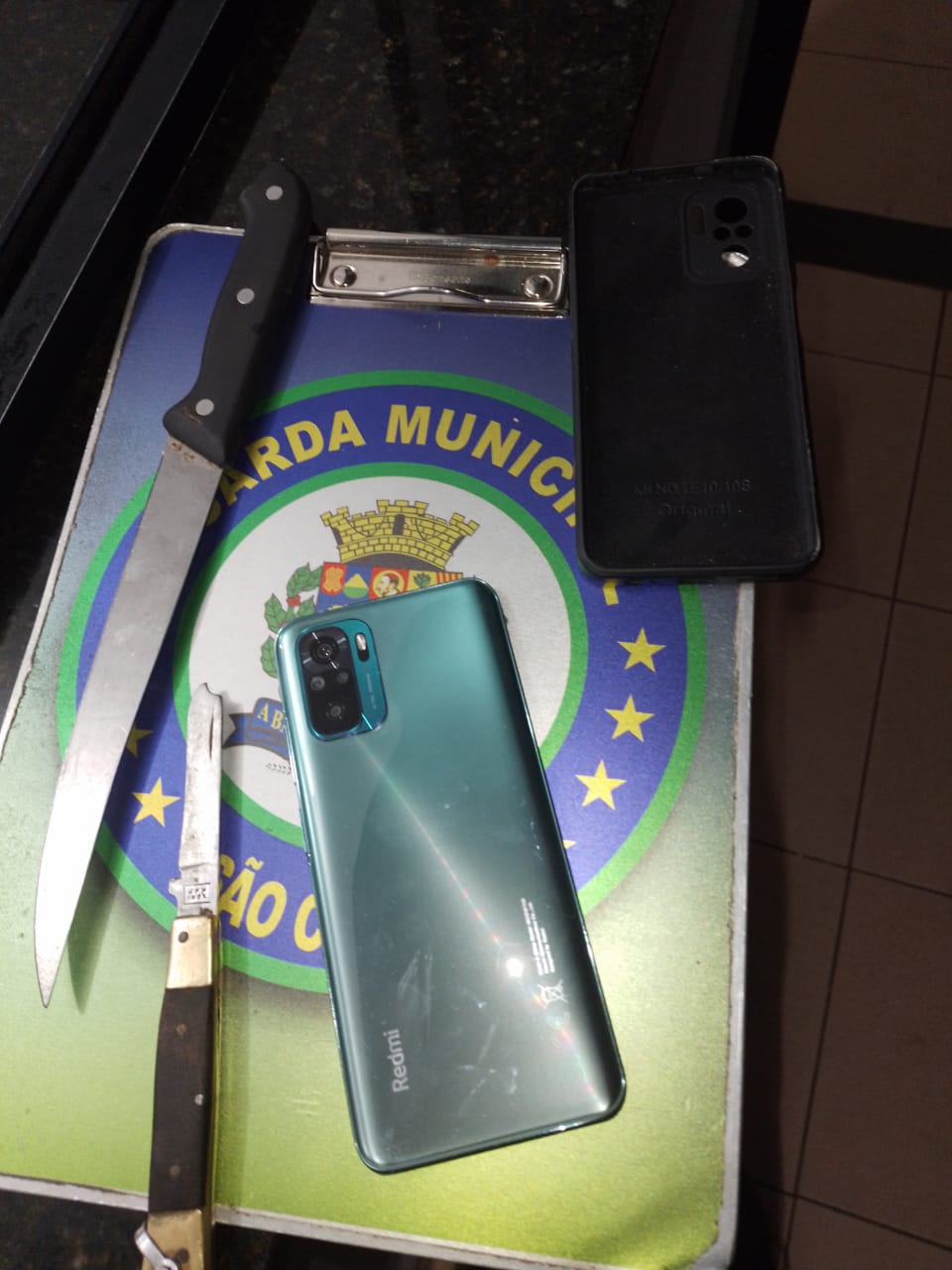 Segundo boletim de ocorrência, por volta das 3:59, uma viatura da GM estava em patrulhamento preventivo, quando se deparou com três indivÃduos. Dois quando avistaram a viatura saÃram correndo pela Av. São Carlos. O outro que ficou no local aproximou-se da viatura e disse que havia acabado de ser assaltado pelos dois suspeitos. Os guardas municipais foram no encalço e detiveram um dos indivÃduos na Rua Machado de Assis.  Enquanto corria, o suspeito teria jogado uma faca ao solo. Em revista pessoal foi localizado em poder do averiguado um canivete. A GM fez o trajeto por onde ele havia passado e encontrou um aparelho celular. Os GMs retornaram no local, mas a vÃtima havia ido embora. A ocorrência foi apresentada na Central de PolÃcia Judiciária, onde foi apreendido o celular , as duas armas brancas e o averiguado foi liberado.