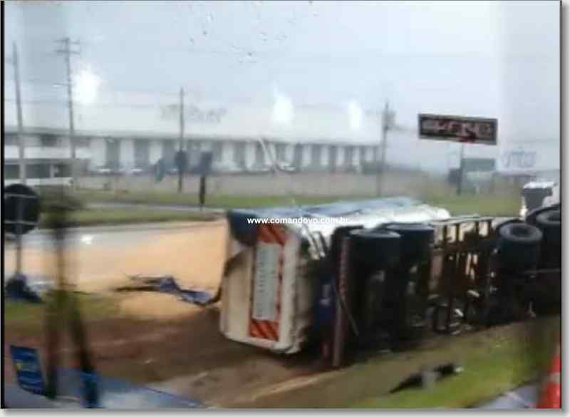 De acordo com informações, um caminhão havia parado no acostamento devido um problema e o outro caminhão carregado com farelo colidiu na sua lateral. O caminhão causador do acidente ficou desgovernado e tombou. O Corpo de Bombeiros foi acionado e encontrou as vÃtima ilesas. A PolÃcia Militar Rodoviária e a concessionaria que administra a rodovia estiveram no local e tomaram as medidas cabÃveis.