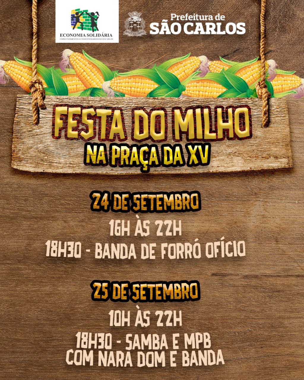 A Comissão Organizadora da Feira Permanente de Economia Solidária da Praça da XV realiza no próximo fim de semana, no sábado, dia 24 e no domingo, dia 25, a Festa do Milho. No sábado (24/09) a Festa acontece das 16h às 22h com a apresentação da Banda Ofício, com muito forró para o público. O show começa às 18h30. No domingo (25/09) a Festa começa já a partir das 10h com encerramento previsto para às 22h. A música vai ficar por conta da apresentação da cantora Nara Dom com muito samba e MPB. Nos dois dias de festa serão comercializados diversos produtos à base de milho, como bolos, pamonha, curau, polenta, cuscuz, broa de milho, canjica, pipoca, além dos pratos típicos da feira como lanches, espetinhos, doces. O artesanato também estará presente na Festa do Milho da Praça da XV.