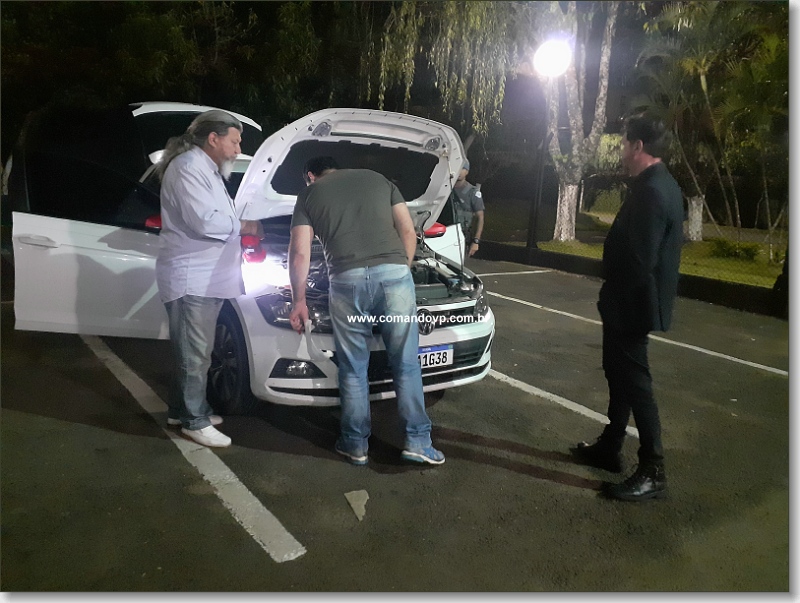 De acordo com boletim de ocorrência, as equipes da Força Tática estavam em patrulhamento, momento que avistaram um veículo Polo, ocupado por M.F.DS, de 22 anos, e os passageiros A.K.M.C, C.G.D.S, e C.E.S, ambos de 24 anos. O carro foi abordado e o condutor não possuía CNH. Ele disse que estavam em um bar no bairro Antenor Garcia e havia pegado o veículo emprestado de um colega, para levar os amigos. Nada de ilícito foi localizado, porém a central de mídia do veículo, mostrou a numeração do chassi com queixa de furto ocorrido na cidade de Americana –SP. A ocorrência foi encaminhada para a Central de Polícia Judiciária, onde o delegado de plantão, Dr. Gilberto de Aquino apreendeu o veículo e recolheu ao pátio municipal. Os averiguados foram liberados.