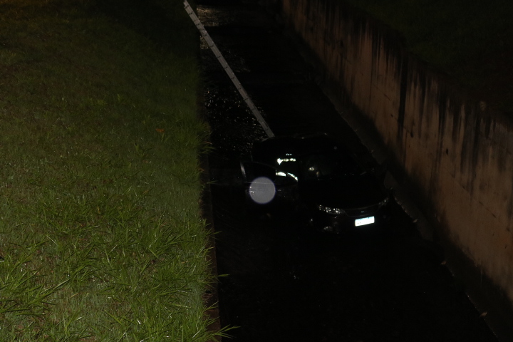Um técnico de enfermagem foi detido pela PM após avançar dois pares e “jogar” um carro no córrego nesta noite de sábado, 29-10-2022, na Avenida Trabalhador São-carlense, região do Campus Um da USP, São Carlos-SP.