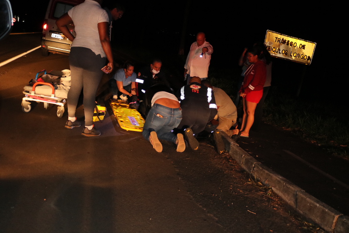 Duas mulheres sofreram  ferimentos graves nesta noite de terça-feira, 01-11-2022, na SP-215 ( rodovia Professor Luís Augusto de Oliveira),   região do trevo do bairro Cidade Aracy, São Carlos-SP. De acordo com informações de populares, M.H.G.F, de 44 anos, conduzia uma moto da cor vermelha, no sentido SP-310, bairro Cidade Aracy, quando teria atropelado uma pedestre, a qual teria tentado atravessar a pista. Ambas foram ao solo e ficaram feridas. Populares acionaram a PM e também o SAMU. Duas ambulâncias do SAMU foram para o local e encontraram as vítimas com ferimentos graves. A mulher atropelada pela moto, foi intubada pela equipe da USA. Já a condutora da moto, foi socorrida por uma unidade básica do SAMU.  Ambas foram encaminhadas para a Santa Casa, onde permaneceram internadas. A Polícia Rodoviária esteve no local e acionou a Polícia Científica. A mulher atropelada, foi identificada como sendo T.W.S, de 33 anos.