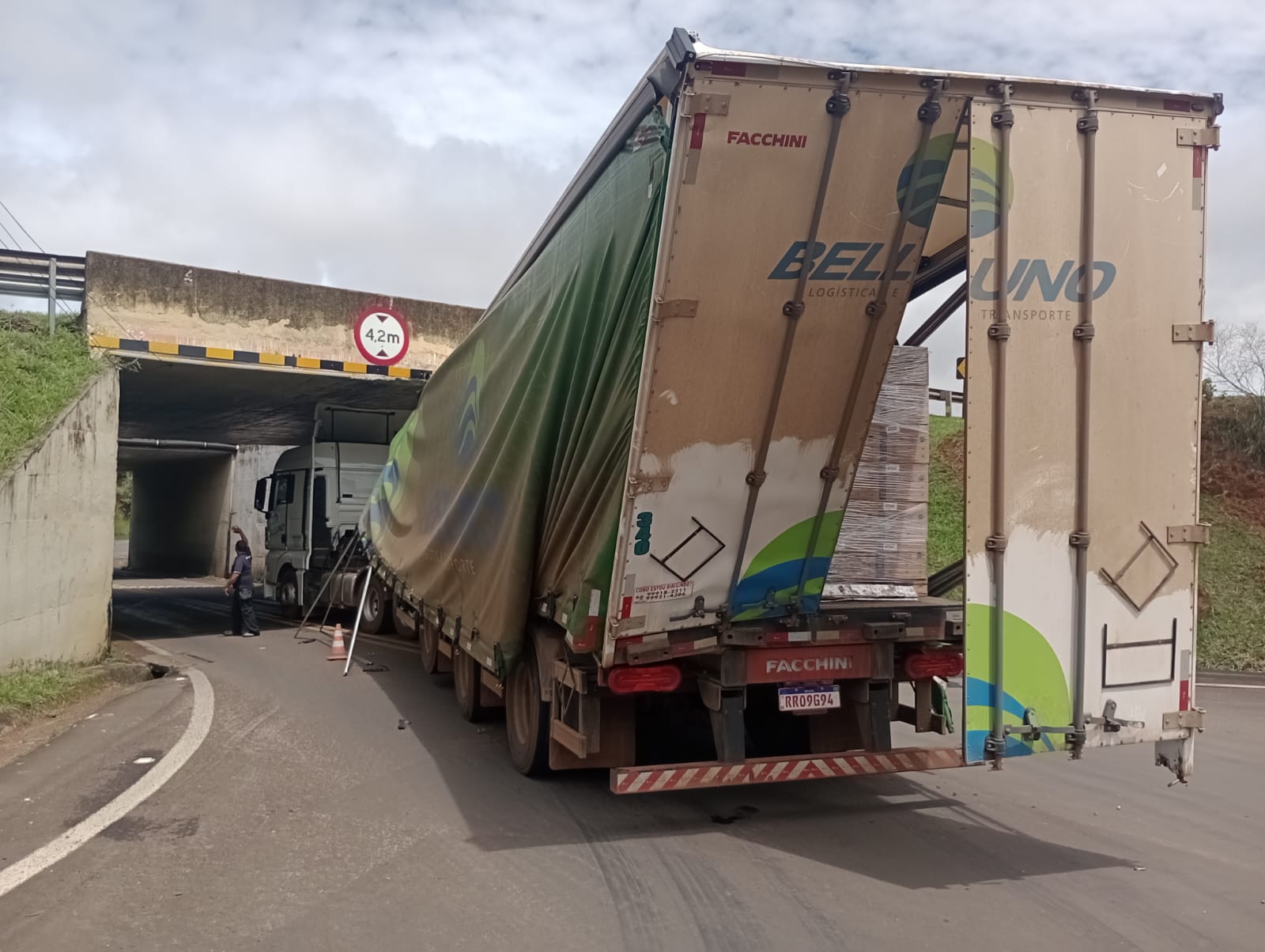 O motorista tentou passar, mas a carga, era mais alta que a metragem do pontilhão. Sendo assim, o caminhão ficou enroscado no local. A Polícia Militar Rodoviária  foi acionada e com um guincho o caminhão foi retirado do e o trânsito foi liberado.