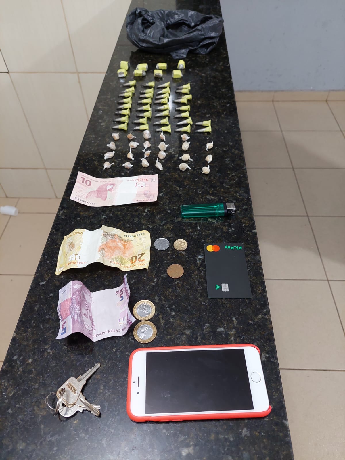 Segundo informações,   uma equipe do Rádio Patrulhamento da PolÃcia Militar estava em patrulhamento, quando os policiais avistaram T.G T , 24 anos, o qual estava sentado. Este saiu correndo, mas acabou sendo abordado. No local foram localizados 23 pedras crack, 34 pinos de cocaÃna, 08 porções pequenas maconha e R$ 37,00. A PM encaminhou a ocorrência para a Central de PolÃcia Judiciária, onde o sujeito foi autuado em flagrante por tráfico de drogas e recolhido ao Centro de Triagem de São Carlos.