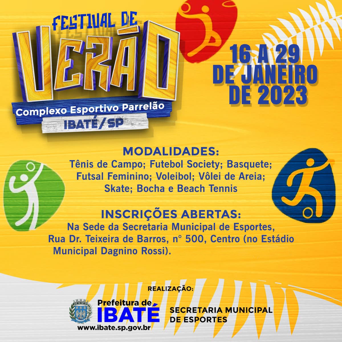 O objetivo do Festival de Verão, que acontece no Complexo Esportivo Parrellão, é movimentar crianças, jovens e adultos, especialmente no período de recesso escolar, desenvolvendo e motivando a população a utilizar e se exercitar em todas as modalidades oferecidas. Pensando nisso a Secretaria Municipal de Esportes, Turismo e Lazer, optou em prorrogar as inscrições para algumas modalidades.