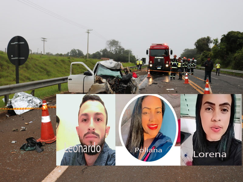 As vÃtimas do acidente ocorrido nesta madrugada de segunda-feira, 23/01/2023, no km 248 da rodovia SP-318, em São Carlos-SP, foram identificadas como  Leonardo Soares, 30 anos, ( motorista do Gol), Willian Gabriel da Trindade Barbosa da Silva, 12, Fabiana Alves da Trindade ( Fabiana perdeu o filho Willian, porém ela continua internada na Santa Casa de São Carlos) , Poliana Alves da Trindade, 41 e  Lorena DominÃcia Alves da Trindade, 23 anos. O motorista do caminhão, de 36 anos, o passageiro de 62 e condutor da Toyota, de 66, nada sofreram. A PolÃcia Militar Rodoviária esteve no local do acidente, juntamente com o delegado de plantão e a PolÃcia CientÃfica e os corpos foram encaminhados ao IML. A Funerária Grupo Matriz conseguiu localizar os familiares das vÃtimas. As mulheres e a criança são do estado de Alagoas.  https://www.facebook.com/comandovp190/videos/554985910021839