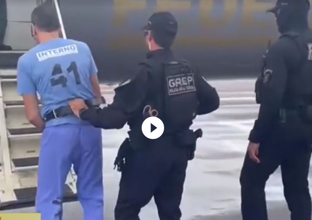 Uma gravação feita pela Polícia Federal mostra o principal líder da organização criminosa Primeiro Comando da Capital (PCC), Marco Willians Herbas Camacho, o Marcola, ao ser conduzido algemado ao jatinho que o trouxe para Brasília na última quarta-feira (25). De acordo com o ministro Flávio Dino, o motivo da mudança de prisão seria um suposto plano de fuga da unidade em que ele estava. A governadora em exercício Celina Leão afirmou nesta quinta-feira (26) que o governo do Distrito Federal está "apreensivo" com a transferência do líder do PCC para Brasília.