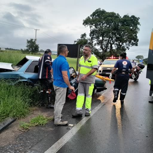 Segundo informações, o Del Rey, conduzido por C.P.S, de 46 anos, teria saÃdo da alça de acesso da rodovia Washington LuÃs,  ao cruzar a SP-215, foi atingido pelo Monza. O motorista do Del Rey perdeu o controle da direção e acabou atingindo uma árvore.  C.P.S e a senhora E.P.S, de  78 anos, ambos ocupantes do Del Rey ficaram levemente feridos e foram socorridos pelo SAMU e pela concessionária que administra a rodovia e encaminhados para a Santa Casa. A PolÃcia Militar Rodoviária esteve no local e tomou as medidas.