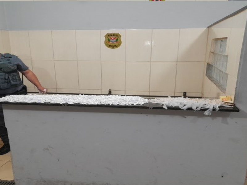 Segundo informações, os policiais receberam  denúncia que neste local um indivÃduo guardava drogas. A equipe do sargento Strozze ao chegar no local, o suspeito estava na porta da residência, este correu para dentro e fugiu pelos fundos. A moradora do local, que segundo consta, é mãe adotiva do suposto traficante, franqueou a entrada dos policiais e dentro do quarto do indivÃduo que fugiu, foram encontrados 1878 pinos de cocaÃna, 1040 pedras de crack, além de proximamente R$ 400,00 e matérias para embalos de drogas. Todo o material apreendido foi encaminhado para Central de PolÃcia Judiciária, onde foi apreendido. A DISE deverá investigar o fato e até pedir a prisão do suspeito.