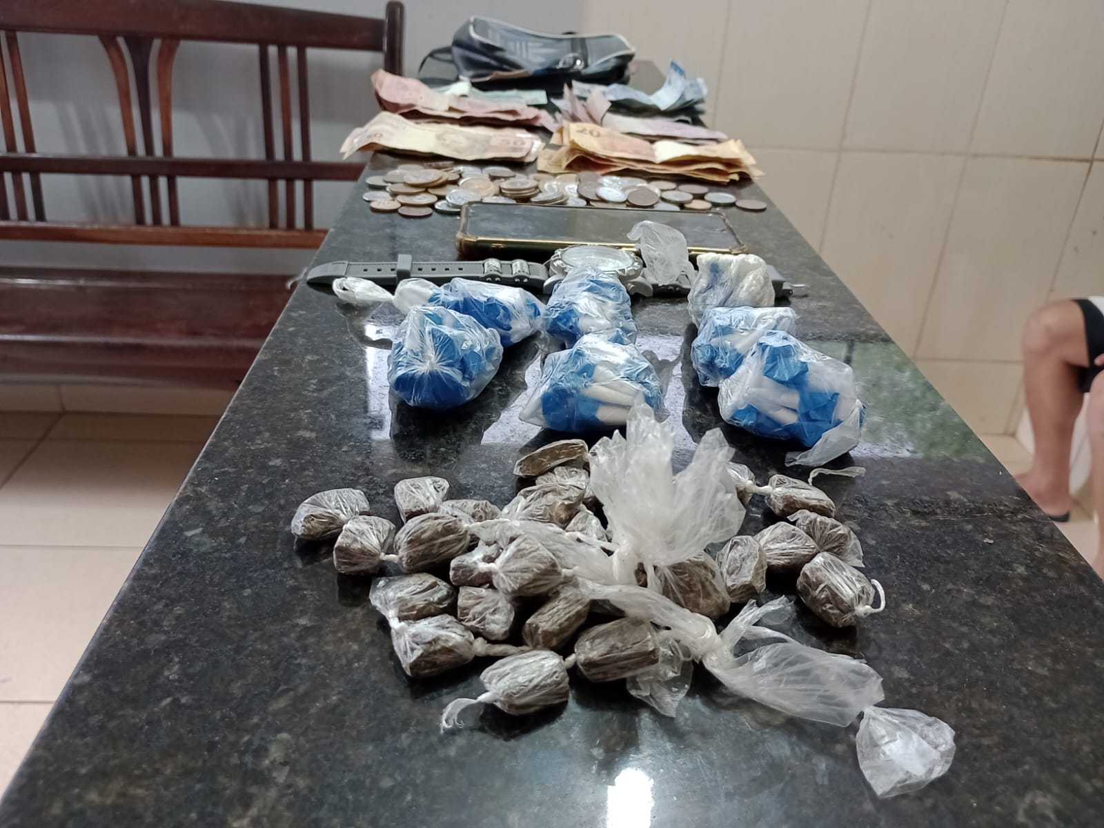 De acordo com informações, a Polícia Militar foi informada que três indivíduos estariam na traficância no referido local. As equipes do Rádio Patrulhamento foram para o local e os três suspeitos foram abordados. Em revista pessoal, foi localizado dinheiro no poder dos averiguados. Em um monte de entulho, próximo onde os suspeitos estavam, foram localizadas as drogas. Os averiguados negam estarem vendendo drogas. Eles foram encaminhados para a Central de Polícia Judiciária, mas até o fechamento  desta matéria, a situação dos averiguados não havia sido definida.