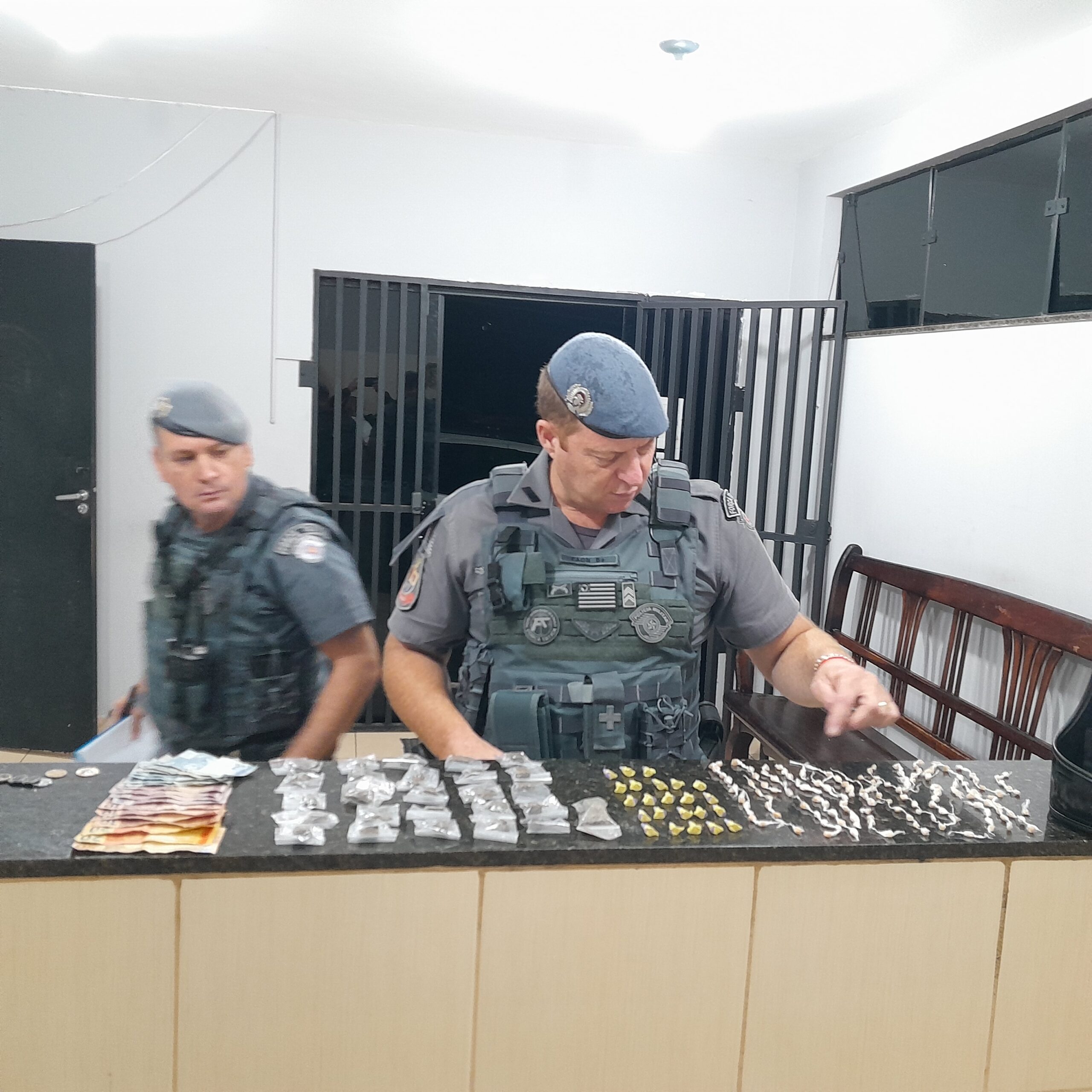 Segundo informações, os policiais, sargento Caon, cabo Moreira e cabo Vinicius, estavam em patrulhamento, quando avistaram , C.S.O, de 22 anos, agachado. O suspeito saiu do local, mas acabou sendo detido. No local, foram localizados 23 pinos de cocaÃna, 26 porções de maconha, R$ 169,00 reais e 135 pedras de crack. O detido foi encaminhado para a Central de PolÃcia Judiciária, onde foi qualificado como investigado e liberado.