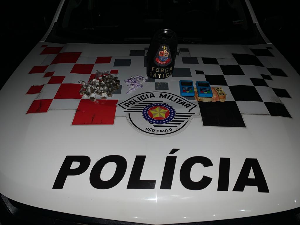 Dois adolescentes foram detidos pela Força Tática na noite de domingo, 12-03-2023,  e drogas foram apreendidas  na Rua José Quatrochi, bairro São Carlos V, São Carlos-SP.