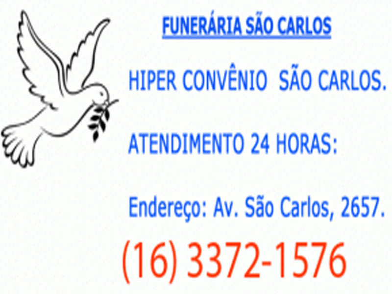 Faleceu dia 13/03/2023 as 2h55 em São Carlos com 69 anos a Sra Maria Angela Tassim de Sousa.Deixa viúvo o Sr Leandro Ferreira de Sousa, filhos , netos e familiares. O sepultamento dia 13/03/2023 as 14h30 no cemitério municipal Nossa Senhora do Carmo.