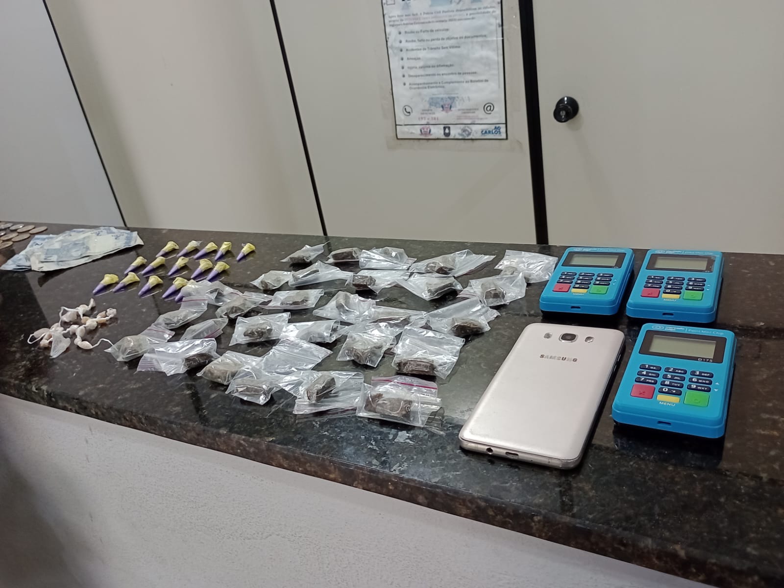 Um adolescente de 16 anos foi apreendido pela PM nesta manhã de quinta-feira, 23 de março de 2023, em poder de drogas e dinheiro na Rua Francisco Possa , bairro  Santa Angelina, São Carlos=-SP.
