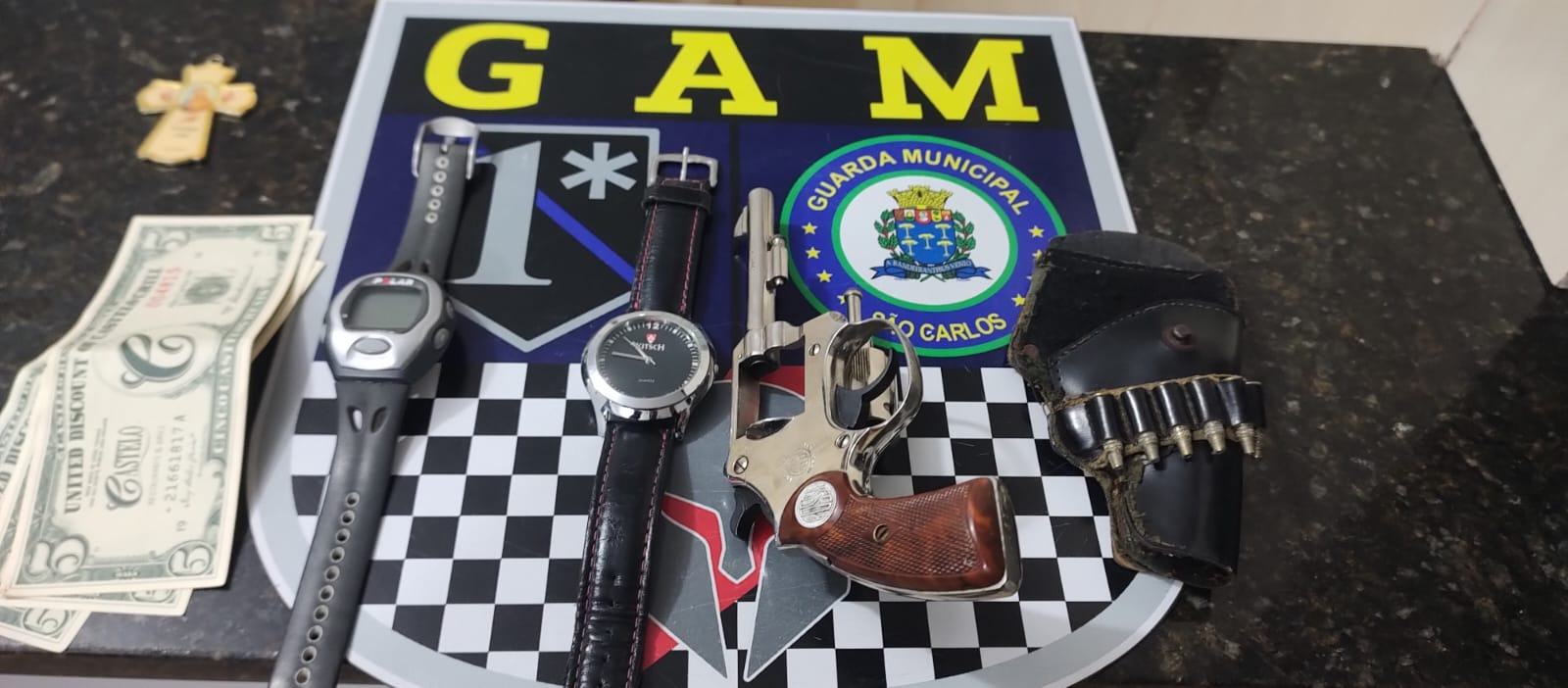 De acordo com informações, vizinhos escutaram  barulho em uma casa e acionaram a Guarda Municipal. As equipes foram para o local e detiveram V.C.R,  28 anos, o qual estaria  dentro de um quarto e com um revólver na cintura ( na parte de trás). O detido foi encaminhado para a Central de Polícia Judiciária, onde foi preso em flagrante.
