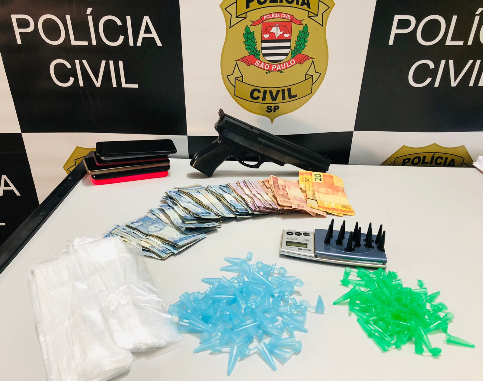 Após trabalho de Inteligência Policial realizado por policiais civis da Delegacia de Investigações Sobre Entorpecentes - D.I.S.E. de São Carlos, foi identificado um imóvel na Vila Costa do Sol utilizado para guarda e venda de entorpecentes.                                                                                Durante a diligência foram apreendidas drogas, dinheiro, celulares, apetrechos utilizados para o embalo e venda de entorpecentes; além de um simulacro de arma de fogo. Os trabalhos de PolÃcia Judiciária terão continuidade visando apurar os responsáveis pelo comércio ilegal.