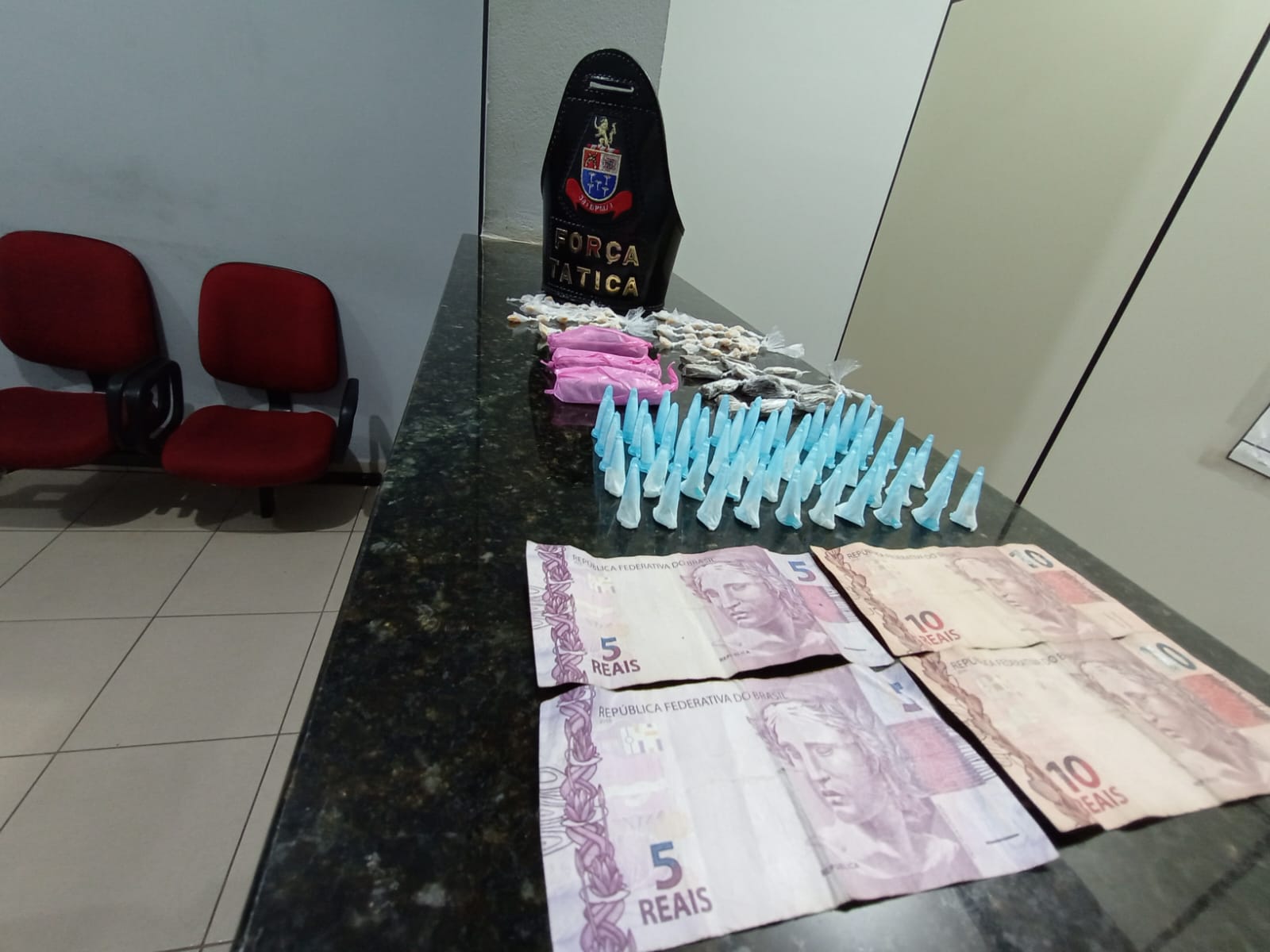 Segundo informações, o sargento Parente, cabo Jeferson e soldado Ederson estavam em patrulhamento, quando se depararam com um indivíduo entregando algo para um motociclista. A moto fugiu e o suposto traficante tentou correr a pé. Na fuga ele teria dispensado uma sacola contendo drogas. A ocorrência foi encaminhada para a Central de Polícia Judiciária, onde está sendo apresentada.