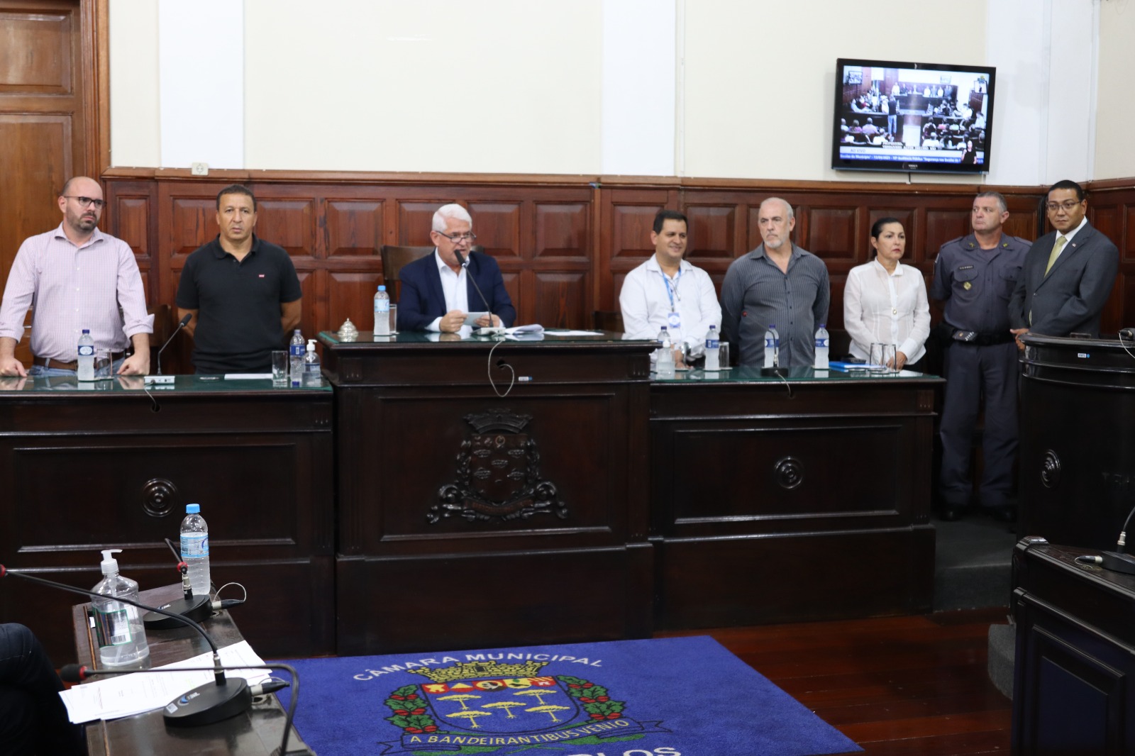 A Câmara Municipal realizou na tarde desta quinta-feira (13/04) uma audiência pública para debater a segurança nas escolas de São Carlos. Aberta pelo presidente da Câmara, vereador Marquinho Amaral, e presidida pelo vereador Lucão Fernandes, propositor, a audiência contou com a participação do secretário de Segurança Pública, Samir Gardini, que fez uma apresentação das ações desenvolvidas pela Prefeitura como a instalação, desde setembro do ano passado, de câmeras e novos alarmes nas unidades escolares municipais. Das 61 unidades, 53 já receberam os novos equipamentos e em outras 8 os alarmes e câmeras estão instalados, porém em período de teste. Neste momento, 530 câmeras já estão em funcionamento nas escolas municipais e interligadas com a Central de Monitoramento da Guarda Municipal. Até o final do processo de instalação e testagem, mais de 600 câmeras estarão interligadas ao sistema, um investimento de R$ 3,1 milhões. Gardini também falou do 'SOS Escolar', sistema desenvolvido pela Secretaria de Segurança Pública juntamente com a UFSCar, também controlado pela Guarda Municipal e implantado em 2019 no âmbito das escolas municipais. Em caso de emergência, basta apertar um botão no celular para acionar os órgãos de segurança. Além dessas ações já implantadas, foram apresentadas outras medidas que a Prefeitura pretende efetivar. “Estamos preparando reforço na infraestrutura física das escolas, como instalação de interfones, inclusive uma escola já adquiriu o equipamento com recurso do Programa 'Dinheiro Direto na Escola', mas estamos analisando todas as possibilidades, como a contratação de mais controladores”, afirmou Roselei Françoso, secretário de Educação. Já o secretário de Governo, Netto Donato, falou em nome do prefeito Airton Garcia. “O prefeito pediu atenção especial para essa questão, dentro das possiblidades das finanças municipais, para destinar mais recursos ao reforço da segurança nas escolas. Outra possibilidade que estamos finalizando é a abertura de concurso para reforçar o efetivo da Guarda Municipal”. Também se manifestaram na tribuna da câmara o vice-prefeito Edson Ferraz, o comandante da Guarda Municipal, Michael Yabuki, o Tenente Coronel PM Luiz Sérgio Mussolini Filho, Comandante do 38º Batalhão da Policia Militar de São Carlos, Renato Cássio Sores de Barros, presidente da OAB São Carlos, Débora Gonzalez Costa Blanco, dirigente regional de Ensino, e demais vereadores que participaram da audiência pública.