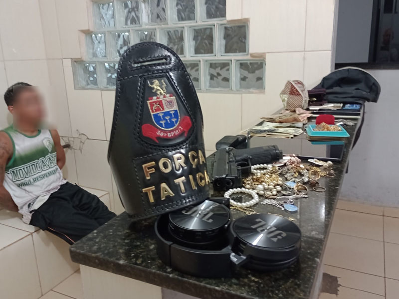 Segundo informações, F.A.S, de 21 anos, o qual mora no bairro São Carlos VIII, em poder de uma réplica de arma de fogo, teria rendido uma senhora de 65 anos, a qual estaria chegando em casa. O bandido adentrou no imóvel e rendeu as  outras duas moradoras, de 68 e 86 anos. O criminoso trancou as vÃtimas em um cômodo, mas uma conseguiu acionar a PM. As equipes de Força Tática, comandadas pelo capitão Rodrigo Della Nina, fecharam o cerco e o bandido foi detido quando tentava deixar o imóvel.   O bandido estava levando os objetos do roubo, como Dólares, joias  e Reais. O criminoso foi encaminhado para a Central de PolÃcia Judiciária, onde foi autuado em flagrante por roubo e recolhido ao Centro de Triagem de São Carlos. Ele teria dito que estava devendo drogas para traficantes e por isso foi roubar para quitar a dÃvida.