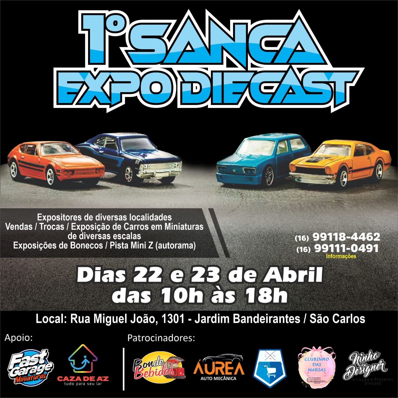 1° Sanca Expo Diecast Entrada gratuita Evento contará com: Exposição, troca e venda de miniaturas 03 food truck Espaço kids com cama elástica Pista Mini Z ( controle remoto ) Pista Downhill para corrida de miniaturas Expositores de: Carros em miniaturas de diversas marcas e escalas Plastimodelismo Bonecos Action figures Bonecas Bebe Reborn Tanques de Guerra