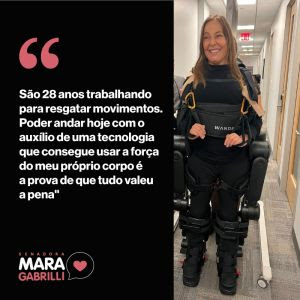 "Não sou a mesma pessoa depois de testar esse equipamento. São 28 anos desafiando a inércia e a gravidade desde que quebrei o pescoço. Sempre trabalhei para resgatar movimentos. Chegar ao momento de andar com o auxílio de uma tecnologia que usa a força do meu próprio corpo é a prova de que todo esforço valeu a pena. É um universo de possibilidades que se abre", afirmou Mara após testar o exoesqueleto.