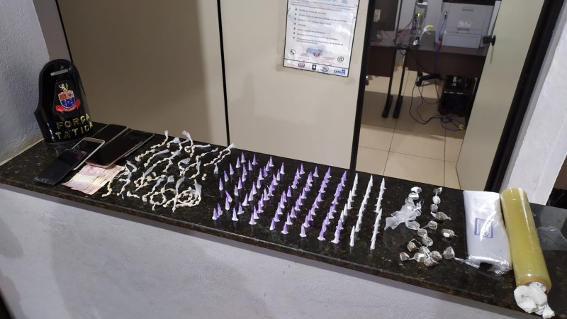 Segundo informações, os policiais militares, sargento Wanderson, sargento Parente e os soldados Ederson e Stivanelo estavam em patrulhamento preventivo por Ibaté, momento que avistaram o jovem na via pública. Ele estava com uma sacola nas mãos e correu para dentro de casa. Os policiais conseguiram abordar o sujeito na garagem e com ele foram localizados, maconha, cocaÃna, crack e dinheiro. Na casa ainda foram apreendidos celulares de procedência duvidosa. A ocorrência foi encaminhada para a Central de PolÃcia Judiciária, onde A.A. D.F, foi autuado em flagrante pelo delegado, Dr. Gilberto de Aquino e recolhido ao Centro de Triagem de São Carlos.