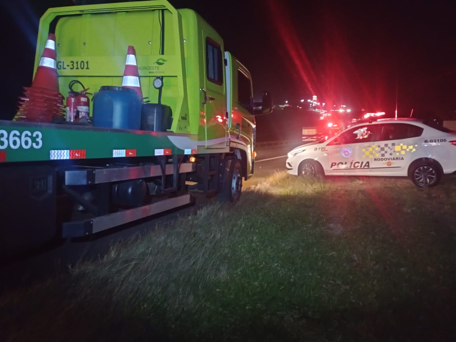 De acordo com informações, o masculino , G.J.B, de 38 anos, estava transitando com sua caminhonete Triton, e tinha como passageiro J.C, 53 , quando um caminhão conduzido por F.D, 44, saiu da faixa da esquerda, adentrou na direita e atingiu a caminhonete. Com a batida, a caminhonete rodopiou e colidiu na defesa metálica. Um veÃculo Fiat Strada conduzido por uma mulher, que tinha como passageiro o filho de 17 anos, não conseguiu parar e colidiu na traseira da caminhonete. O Corpo de Bombeiros e a concessionária que administra a rodovia estiveram no local, mas as vÃtimas não quiseram atendimento. Todos os condutores dos veÃculos fizeram o teste do barômetro e o da mulher deu positivo( o, 50), segundo a PolÃcia Militar Rodoviária. A ocorrência foi apresentada na Central de PolÃcia Judiciária, onde o delegado tomou as medidas cabÃveis.