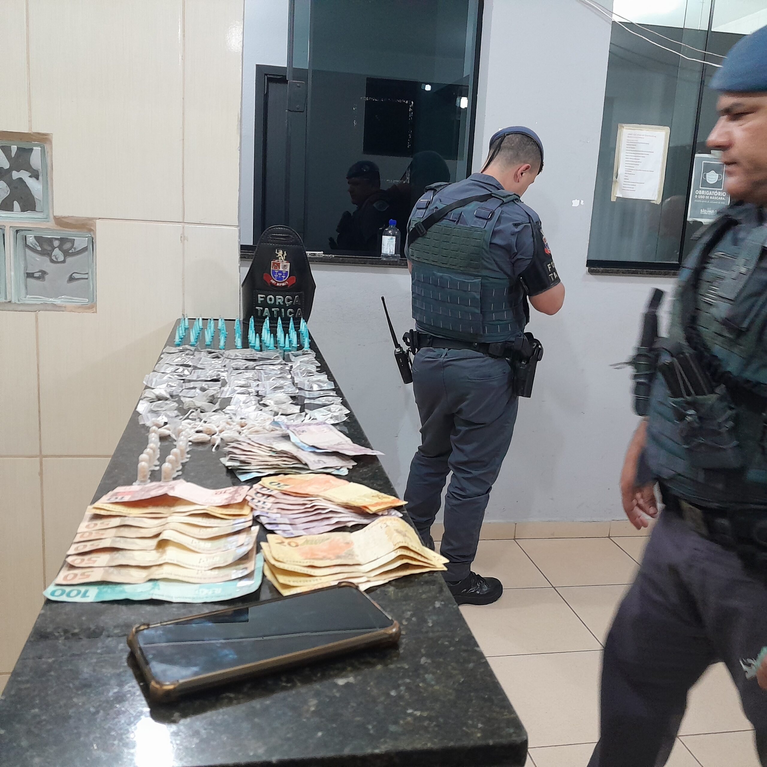Nesta noite de segunda-feira, 05/06/2023, policiais militares da Força Tática detiveram um indivíduo e apreenderam drogas e dinheiro na Rua Tabatinga, bairro Jd. Cruzado, Ibaté-SP. De acordo com informações, o subtenente Douglas, cabo Neto e soldado Ribeiro estavam em patrulhamento, quando avistaram N. G.C, 20 anos. Este ao ver a viatura tentou fugir, mas acabou sendo detido. Em revista pessoal, foram encontrados 677 reais, 56 pedras de crack, 56 porções de maconha, 69 pinos e um celular. O jovem confessou que vende drogas desde 2019 e que nunca havia sido preso. A ocorrência foi encaminhada para a Central de Polícia Judiciária de São Carlos, onde o detido foi autuado em flagrante por tráfico de drogas e recolhido ao Centro de Triagem de São Carlos.